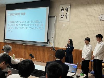 生徒からは、「最後の発表の場となったが、ここまで同じメンバーで研究を続けられたことは本当に良い経験になった。最初はどうやって行こうかと先行きが見えない中で、今回までに多くの気づきと改善、発展をすることができた。まだまだ改善の余地があるが、このような大きな舞台で発表し、全国クラスの他の生徒の発表も見学することが出来た。この全国発表はとても価値ある経験だと感じた。今後も研究などに携わる機会があると思うので、この経験を忘れずに大切にしていきたい。全国から集まった生徒や先生と研究について議論する中で、新たな発見があった。」という声が聞かれました。