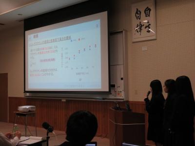 第1回の中間報告会を受けてこれまでに進めてきた研究活動について、大学の先生方に報告し、その内容についてのご指導・ご助言をいただきました。新しい視点からのアドバイスをいただくことで、研究の方向性について見直したり、研究の方向性を明確にしたりすることができました。