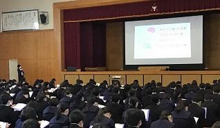 返却された結果冊子の見方と活用の仕方、高校で意識してほしいこと、学習習慣の確立など、「希望進路実現に向けて」のテーマでお話を聴きました。
