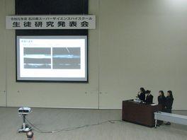 石川県地場産業振興センターで、石川県のSSH指定校3校(金沢泉丘高校、七尾高校、小松高校)とNSH(ニュースーパーハイスクール)指定校の金沢二水高校と金沢桜丘高校が参加して、石川県SSH生徒研究発表会が行われました。