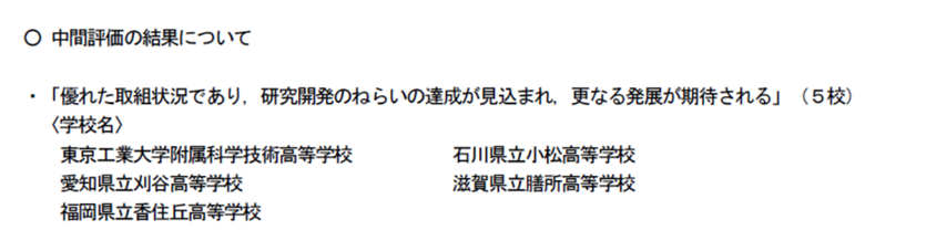 ・スーパーサイエンスハイスクール(平成28年度指定)の中間評価について:文部科学省ホームページ