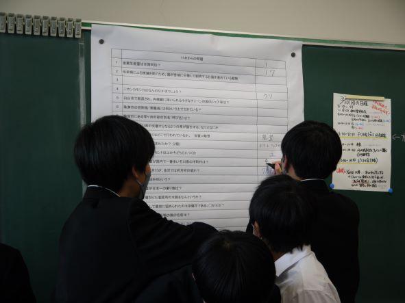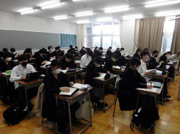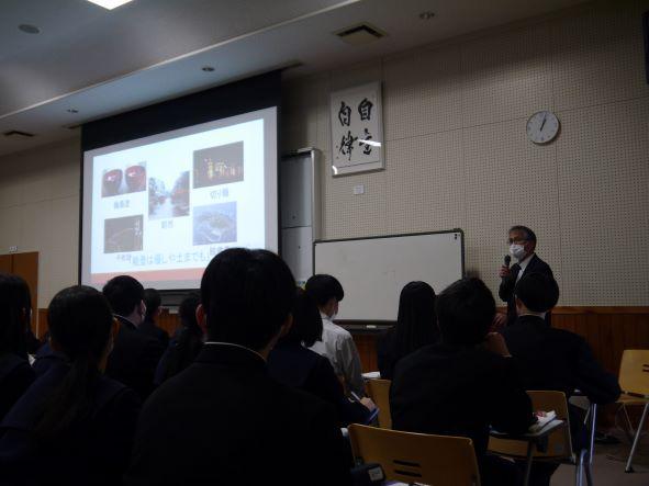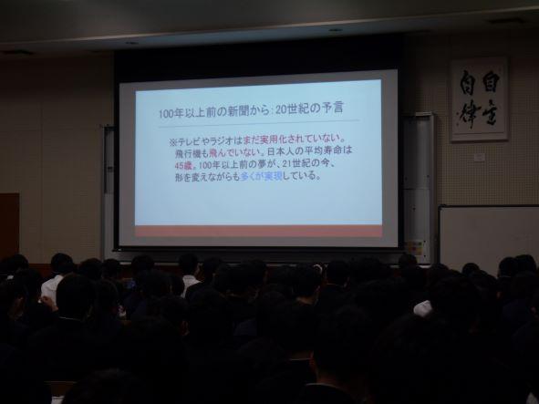 文系生徒は、文系2グループ・理系1グループを、理系生徒は、文系1グループ・理系2グループの発表を聞きました。質疑応答の際に、しっかりと説明している彼らの姿には頼もしさを覚えました。
