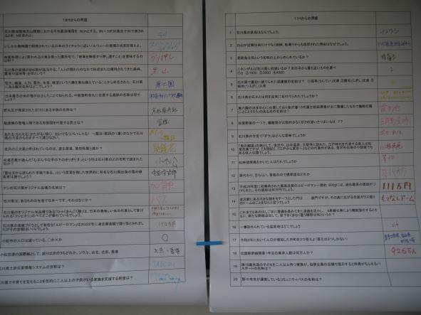 ・『石川県の石川とは何を由来に名付けられたでしょうか?』…など、1月に各クラスが作成した問題(40問)に取り組みました。簡単なもの、思わず首をかしげたくなるものいろいろでしたが、和気藹々と取り組んでいました。