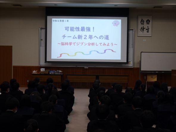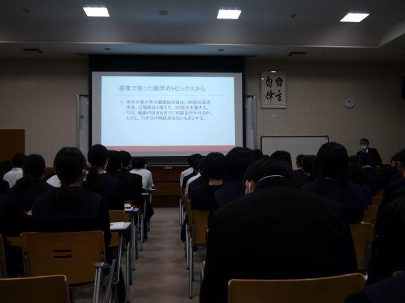 最後に、学年進路担当の荒納先生より、配付した「進路通信 Shin」をもとに生徒に対する学びの期待が述べられました。