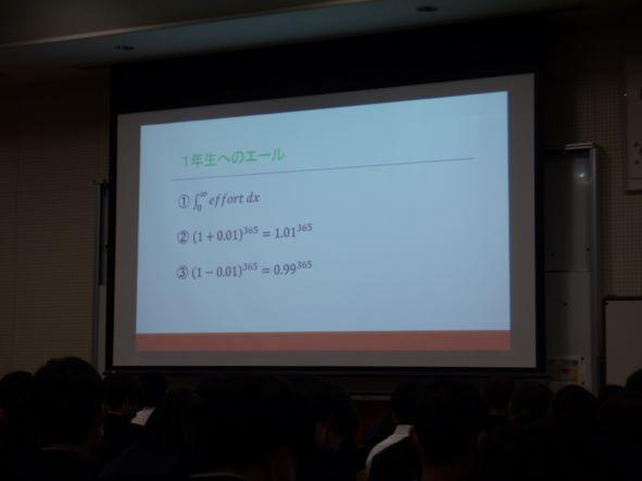 ・「数学は努力(努力を継続して欲しい)」と1年生に対し、エールが送られました。