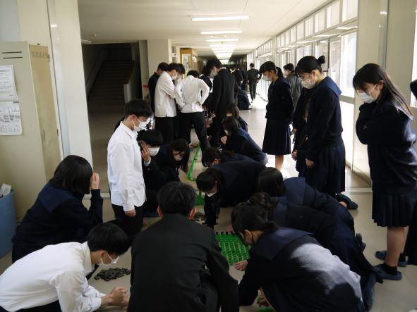 いつもは文系・理系、そして各教科に分かれているグループが、1Hから7Hの教室を使用して合同で行いました。