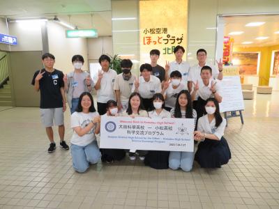 7月27日(木)3日間の国際科学交流を終えた韓国大田科学高校のみなさんが帰国前に小松高校に来校しました。交流してきた28Hの生徒も沢山集まり、校内を案内した後、図書館でお別れ会を行いました。韓国の生徒さんたちがこの3日間の科学交流についての感想を英語で発表してくれて、記念品を渡したり、記念写真などを撮り合ったりした後、韓国の生徒さんたちは小松高校から小松空港へ向かい、帰国しました。
