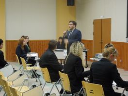 ここで学習したことを踏まえて、これから各班にわかれてディベートの準備を行います。ディベート大会は9月25日(水)に行われます。