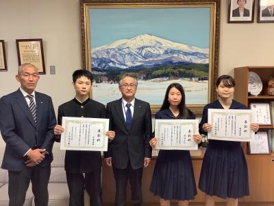 表彰された3名は、生徒会役員として記念祭をはじめ多くの学校行事の企画・運営し、また学校生活のより良くする取り組みに尽力してくれました。