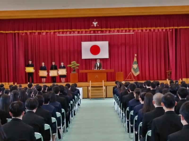生徒会自治功労賞とは、本校の生徒会活動を推進し生徒自治の発展に大きく貢献した生徒を表彰するもので、今年度は3名の生徒を表彰しました。