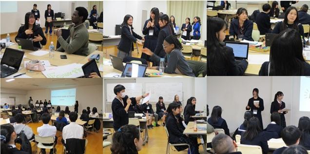 本校からは1年生6名が参加。他校の生徒とともに8つの混成グループを構成し、「日本のフードロス対策を切り口として食糧問題を考える」および「再生可能エネルギーの現状と今後の対策」という、正解のないグローバル課題に挑みました。
