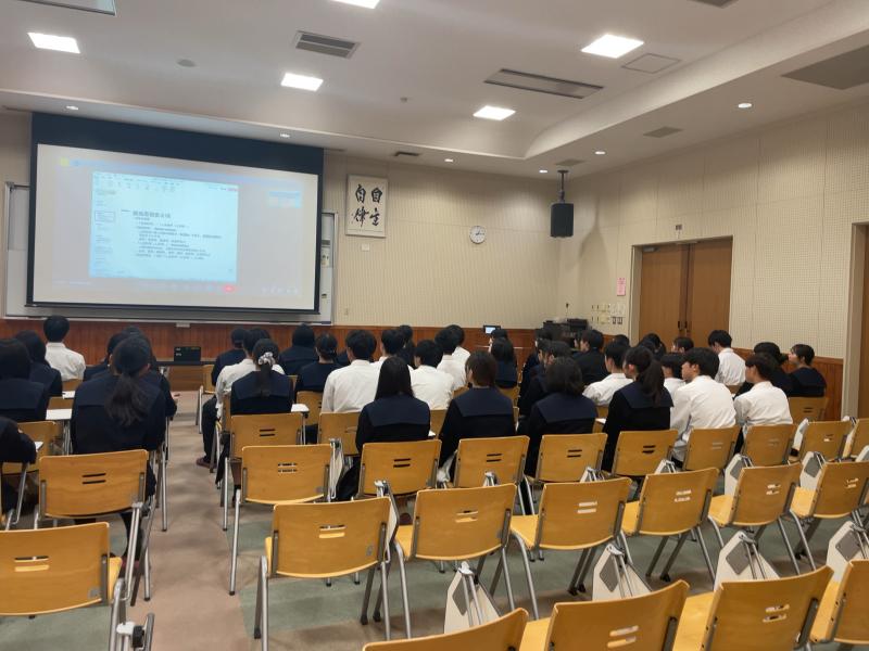 また、高校で学ぶ「公共」と、大学での専門的な学びとのつながりについても触れられ、生徒にとって進路や将来を考える貴重な機会となりました。