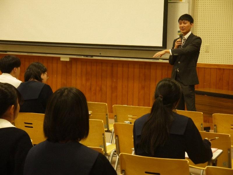 11月21日(金)、宇宙航空研究開発機構(JAXA)でロケット開発に携わる杉森さんをお招きし、特別授業(講演会)を実施しました。理数科1・2年生全員と普通科1・2年生の希望者あわせて約150名が参加しました。宇宙開発の最前線で活躍されている技術者から直接お話を伺う貴重な機会となり、生徒たちは皆、興味深く耳を傾けていました。