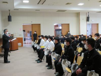 校長先生から、小松高校理数科で担任をしていた時に、当時の生徒と共に課題研究に取り組んだ際のお話がありました。疑問に感じたり、自らが魅了されたりしたテーマに、情熱をもって研究を進めてほしいという激励の言葉をいただきました。