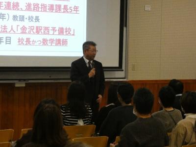 講師には金沢駅西予備校校長の土山樹一郎氏をお迎えし、受験に向けた取り組みについて熱意あふれるご講演をいただきました。