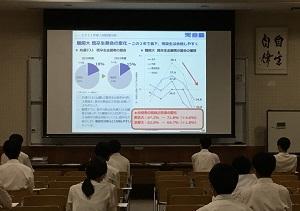 今回は特別に、教員向けの研究会資料が生徒に投影され、今年の最難関大学の入試動向結果の説明を受けました。