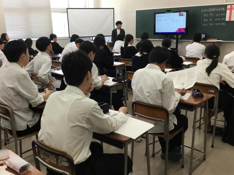 最初に、最新の医学部入試に関して、詳しいデータや情報を交えながら本校の進路指導課から説明を行いました。次に、金沢大学で医学を学んでいる現役の医学部生3名を講師として、なぜ医師を目指しているのか、どのような医師になりたいのか、医学部ではどのような勉強をするのか、医学部生の大学生活はどのようなものかなどお話しして頂きました。高校生からはたくさんの質問が投げかけられ、受験勉強に関すること、面接試験に関すること、部活動との両立はできるのかなどについて、丁寧に答えていただきました。