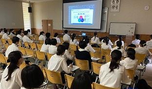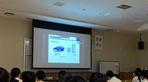 学生でありながら起業をするという話は、最近よく聞きますが、村田さんは2年学修後、休学をし、スタートアップ(ベンチャー)企業で、仕事をしています。学生と社会人という2つの視点での話は、生徒たちにとって、驚きであったようです。