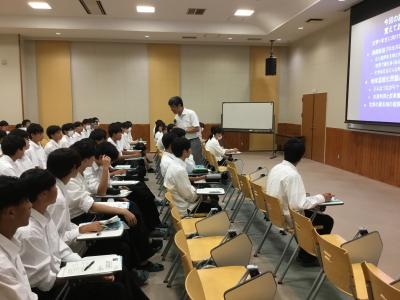 また、工学(Howどのようにして実現するのか)と理学(Whyなぜこのようになるのか)の違いも説明され、文理選択を控えて理系を希望している1年生の参考になったものと思います。そして、課題を見出すために考える力をつけること、イメージすることを伝えていただきました。