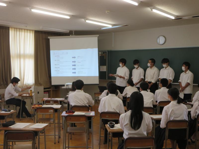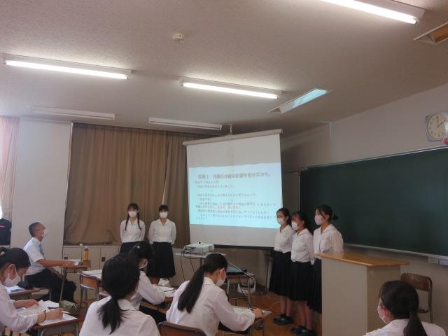 7月21日(水)午後に人文課題研究中間発表会が行われました。21Hの生徒が4月からの研究の成果を発表し助言をもらうことで、新たな視点や今後の研究方針を考えます。小松高校では、地歴公民・英語・国語の3教科に生徒がそれぞれ分かれ、専門的な分野での研究を行っています。様々な方からご助言をいただいたことで、発表会後の反省会は非常に盛り上がりました。