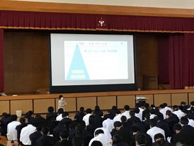 感染対策として午前の部と午後の部の2部構成で実施し,約550名の中学生の皆さんに参加していただきました。