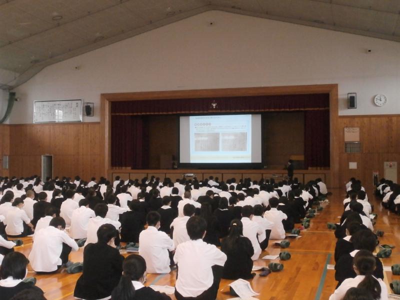 今回は、紺矢さんのみのプレゼンテーションとなりましたが、京都大学での学びの魅力がバンバン伝わってくるものでした。生徒も真剣にメモをとっていたようです。