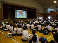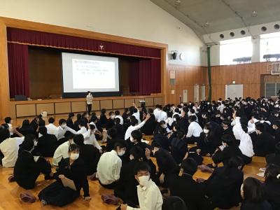感染対策として午前の部と午後の部の2部構成で実施し,約550名の中学生の皆さんに参加していただきました。