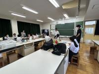 7月28日(金)探究活動の普及を目的とした本校「究める探究教室」事業の一環で、理数科1年の生徒が、国府中学校、松東みどり学園をそれぞれ訪問し、中学生の探究活動へのサポートを行いました。