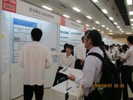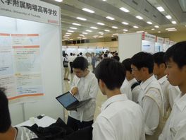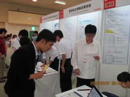 8月7日(水)8日(木)、神戸国際展示場にて、全国SSH生徒研究発表会が行われました。全国のSSH指定校が参加して課題研究など口頭発表やポスターセッションを行いました。本校からは3年生2名が「チェック柄の印象の移り変わり」というテーマでポスター発表を行いました。また、7日(水)には本校の理数科1年生33名と理数科2年生3名も参加し、自分たちの課題研究の参考にしようと、熱心にポスター発表を聞き、質問をしていました。
