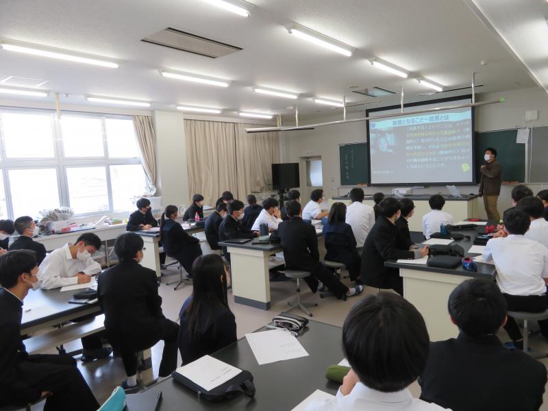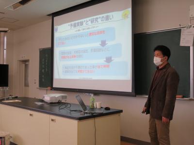 1月13日(金)学校設定科目「課題探究Ⅰ」(理数科1年生)の時間に、石川県立大学 中谷内修先生をお招きし、「研究の意義と課題の設定」と題して特別講義が行われました。