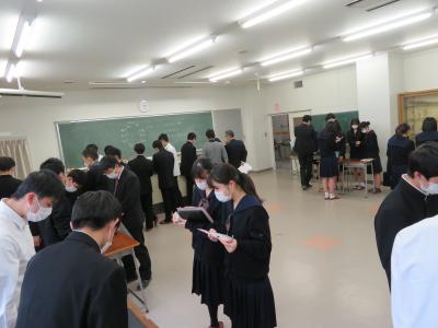 1月13日(金)2年生での課題研究の集大成として、普通科理系の課題研究の発表会が行われました。数学、物理、化学、生物、体育の5分野の研究について、自分たちが設定したテーマに関する発表を行いました。この日は講評者として、石川県立大学から 小栁 喬先生、長野 峻介先生、中谷内 修先生がポスター発表会に参加して下さいました。専門的な観点からの助言や講評を頂くことができて、生徒達にとって非常に有益な時間となりました。