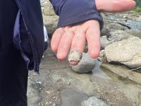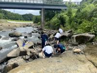 8月17日(木)午後から、理数科1年生希望者を対象に、金沢市大桑町犀川上流貝殻橋付近の河川敷で地学野外実習を行いました。一行は金沢市大桑町へ向かい、大桑層中部貝化石密集層と大桑層下部貝化石密集層での化石採取を行い、大桑層と犀川層の境界付近で地層観察を行いました。