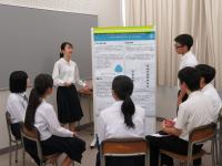 8月23日(水)小松高校で体験入学がありました。理数科体験コースでは、2年理数科の生徒が課題研究のポスター発表会を行い、中学生も高校生も熱心に質疑応答を行いました。その後の懇談会では、中学生が理数科での学校生活や行事について、沢山の質問をしてくれて、大変盛り上がりました。