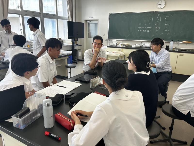 生徒は熱心に自分たちの研究について相談し、アドバイスをいただいていました。