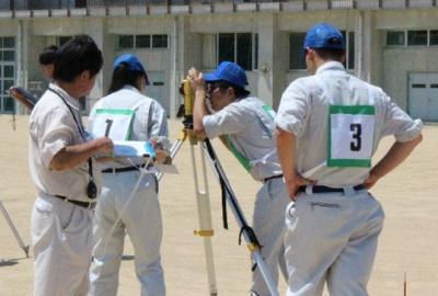放課後、外業(測量の室外作業)・内業(計算)など頑張って練習した結果、2位となり