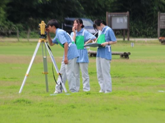 7月26日(金曜日) 眉丈台スポーツ広場にて外業(測量)を、羽咋工業高校にて内業(計算)を行いました。