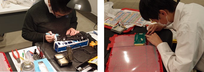 電子回路組立部門は、回路設計(製図)と回路製作(はんだ付け)、プログラミングの3つからなり、選手は制限時間2時間30分で競い合います。
