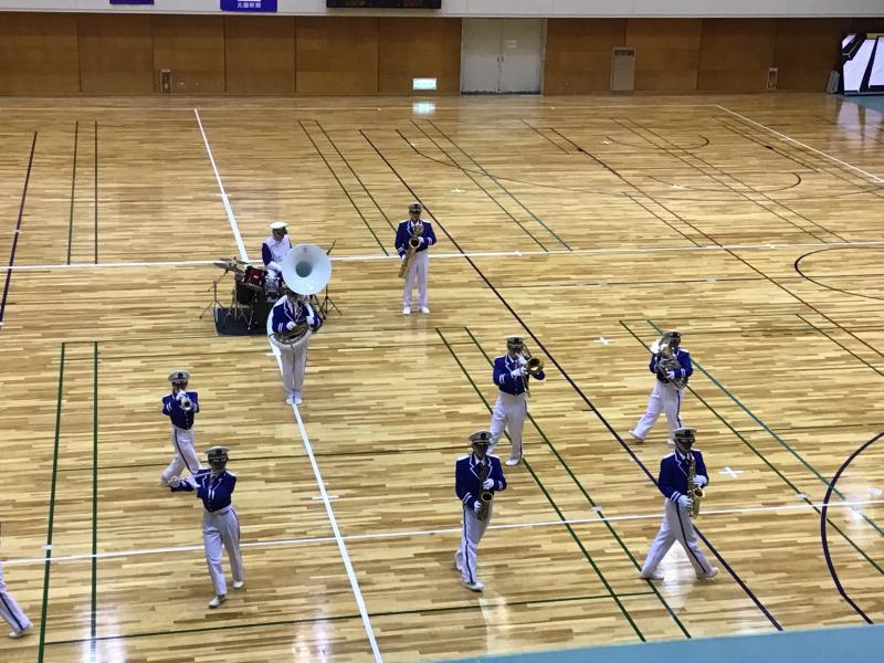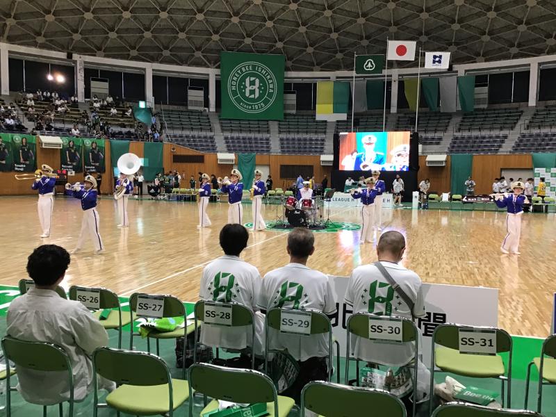 9月21日 小松市運動公園末広体育館のリニューアルオープンでのハンドボールリーグ戦(ハニービー石川)の試合におけるハーフタイムでマーチングを披露しました。