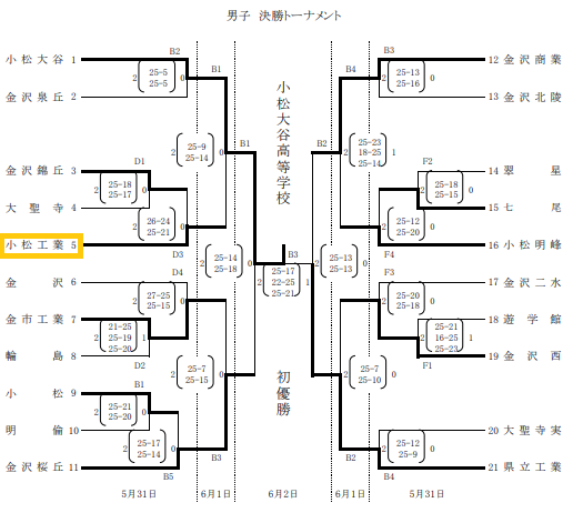 小松工業は大会二日目(22日)の4試合目に金沢桜丘高校と対戦、その後決定戦出場をかけた試合となります。