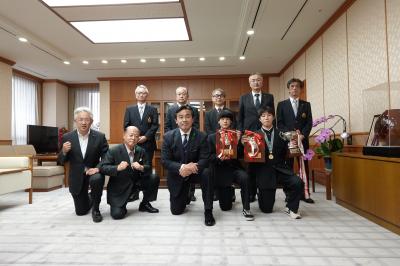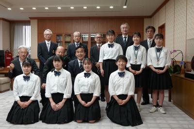 今年3月に香川県で開催された全国高校少林寺拳法選抜大会の男子規定組演武で優勝した本校少林寺拳法部の池田亘輝選手と深沢遥仁選手らが馳浩県知事を表敬訪問しました。