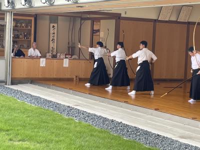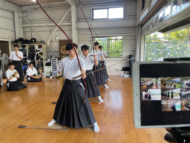 対戦相手と直接向かい合わない弓道競技だからこそ可能なかたちですね。