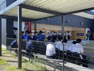 加賀地区弓道大会が開催されました。金沢地区・能登地区と合わせ、三地区でそれぞれ行われる、2年生チームの初戦です。11月の新人大会まで先は長いですが、例年その学年チームの力関係や立ち位置を測る大会でもあります。