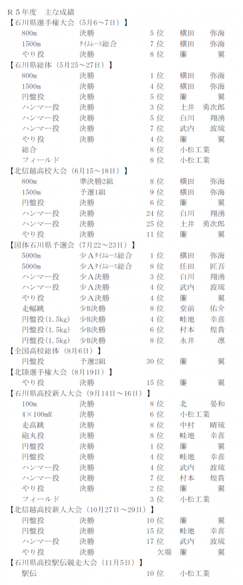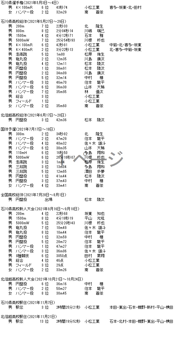 女 砲丸投 決勝 6 位 8m55 髙木 優那 ※北陸選手権出場資格