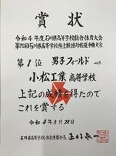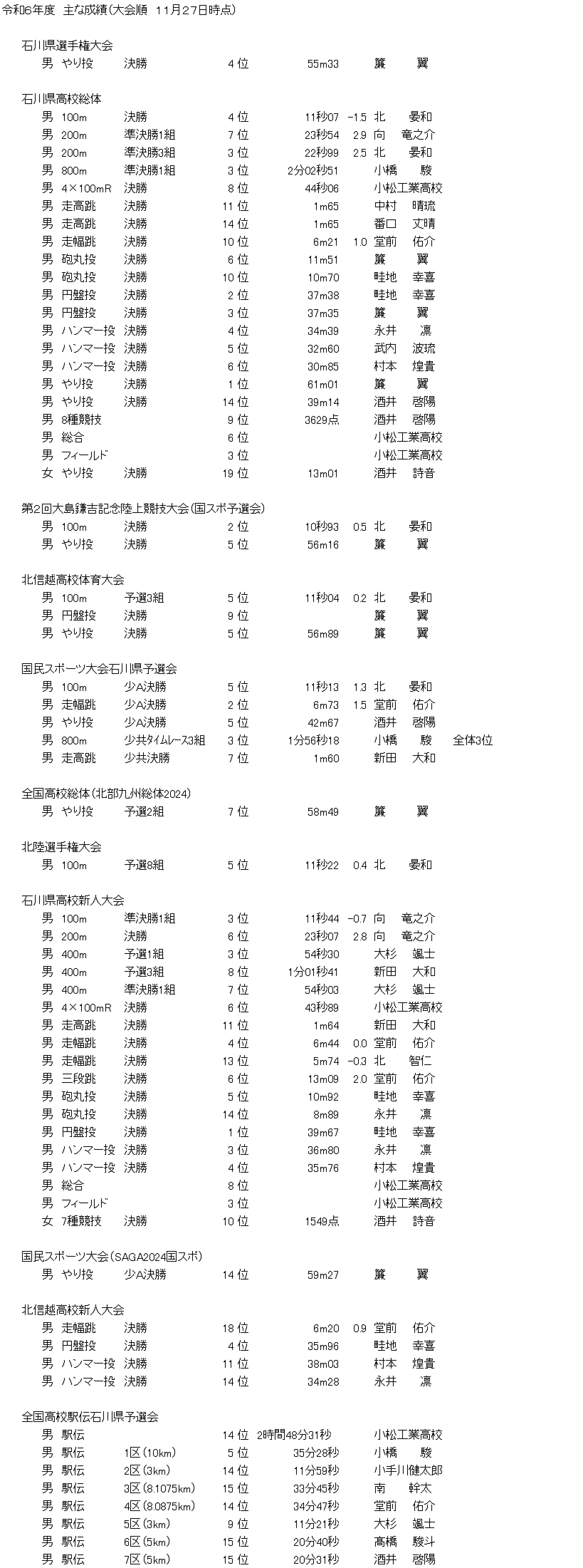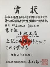男 4×100mR 決勝 7 位 42秒86 小松工業(向-大杉-道坂-堂前)