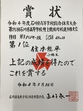 男 ハンマー投 決勝 4 位 38m01 村本 煌貴 ※北信越大会出場