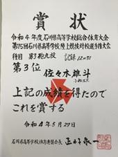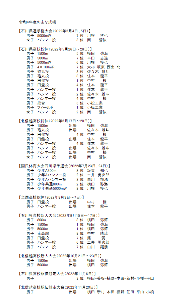男 砲丸投 決勝 8 位 9m79 柳 晄翔 ※北陸選手権出場資格