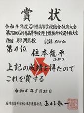男 円盤投 決勝 4 位 36m93 畦地 幸喜 ※北信越大会出場