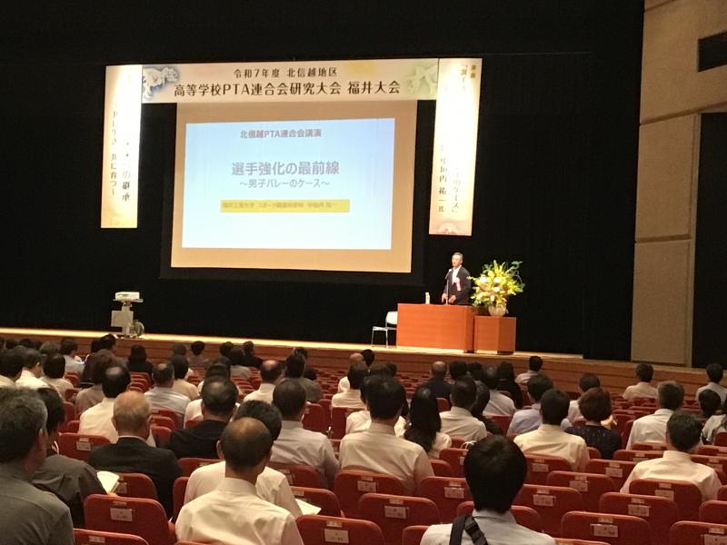 記念講演会は元男子日本代表バレーボールチームの監督をされ、現在は福井工業大学スポーツ健康科学部教授である