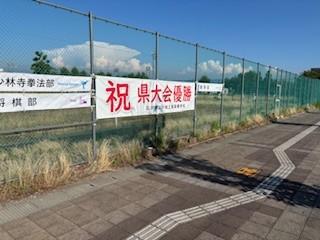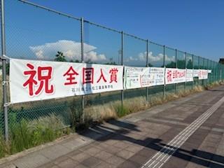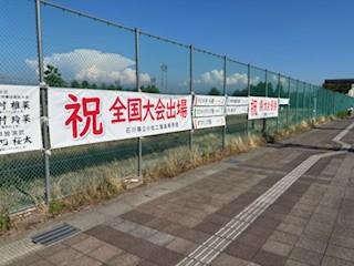 テニスコート横の横断幕ですが、今年から張り出し方を変更しています。今現在県総体・北信越大会の成績を掲示しています。お近くにお寄りの際はぜひご覧ください。