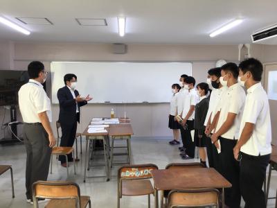 生徒たちは将来のこともあり、メモを片手に真剣に聞いていました。自分がいったい何をしたいのか?どう取り組めばいいか?など、進路決定に向けて、今一度きちんと考える良い機会になったと思います。しっかりと自己を省み、目標を明確にして前向きな進路決定につなげてほしいものです。